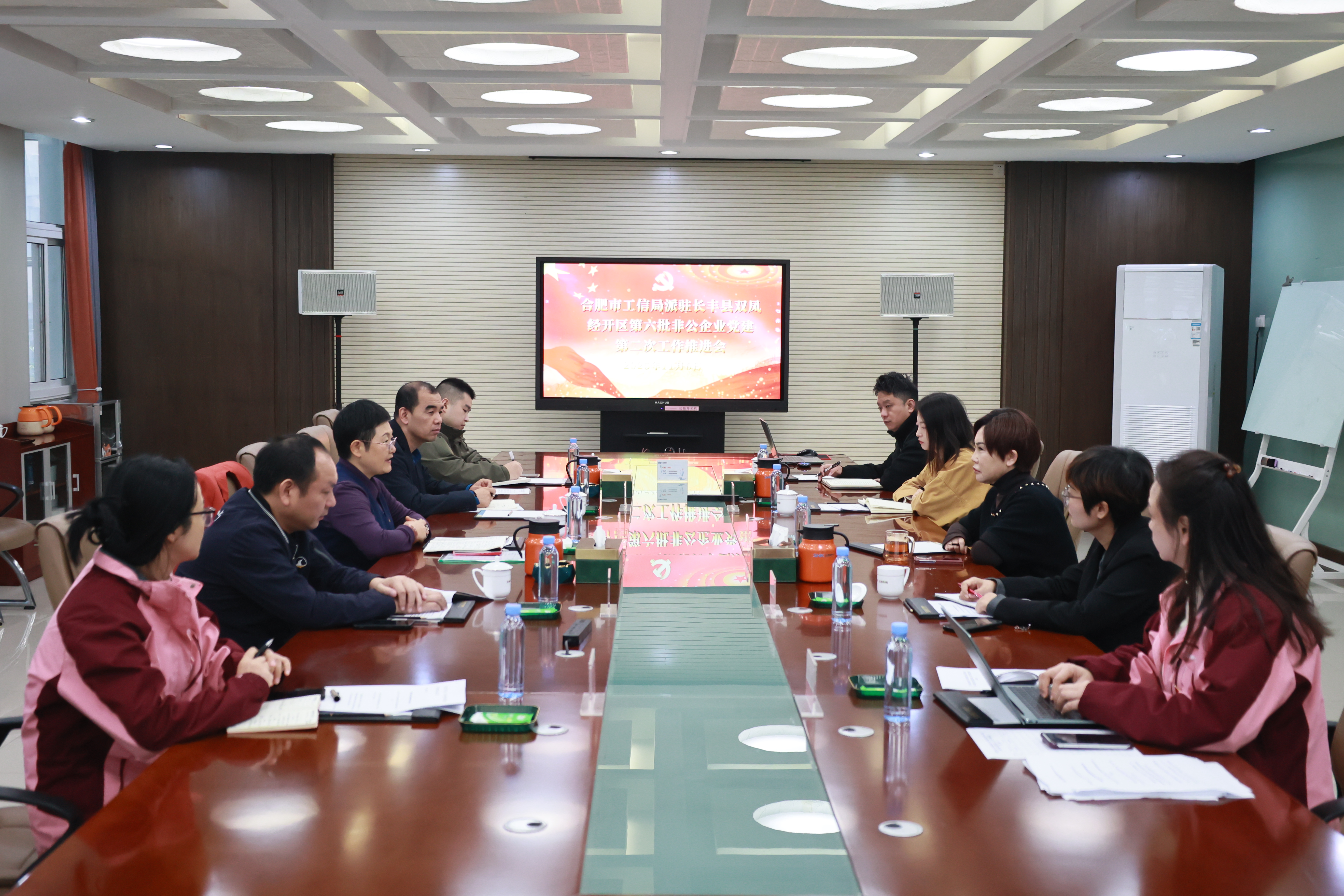 11月6日上午,合肥市工信局派驻长丰县双凤经开区第六批非公企业党建第二次工作推进会在今年会jinnianhui电气公司内召开。园区七家非公企业的党建负责人参会,会议由党建指导员、合肥市经济和信息化局三级调研员项婷婷主持。