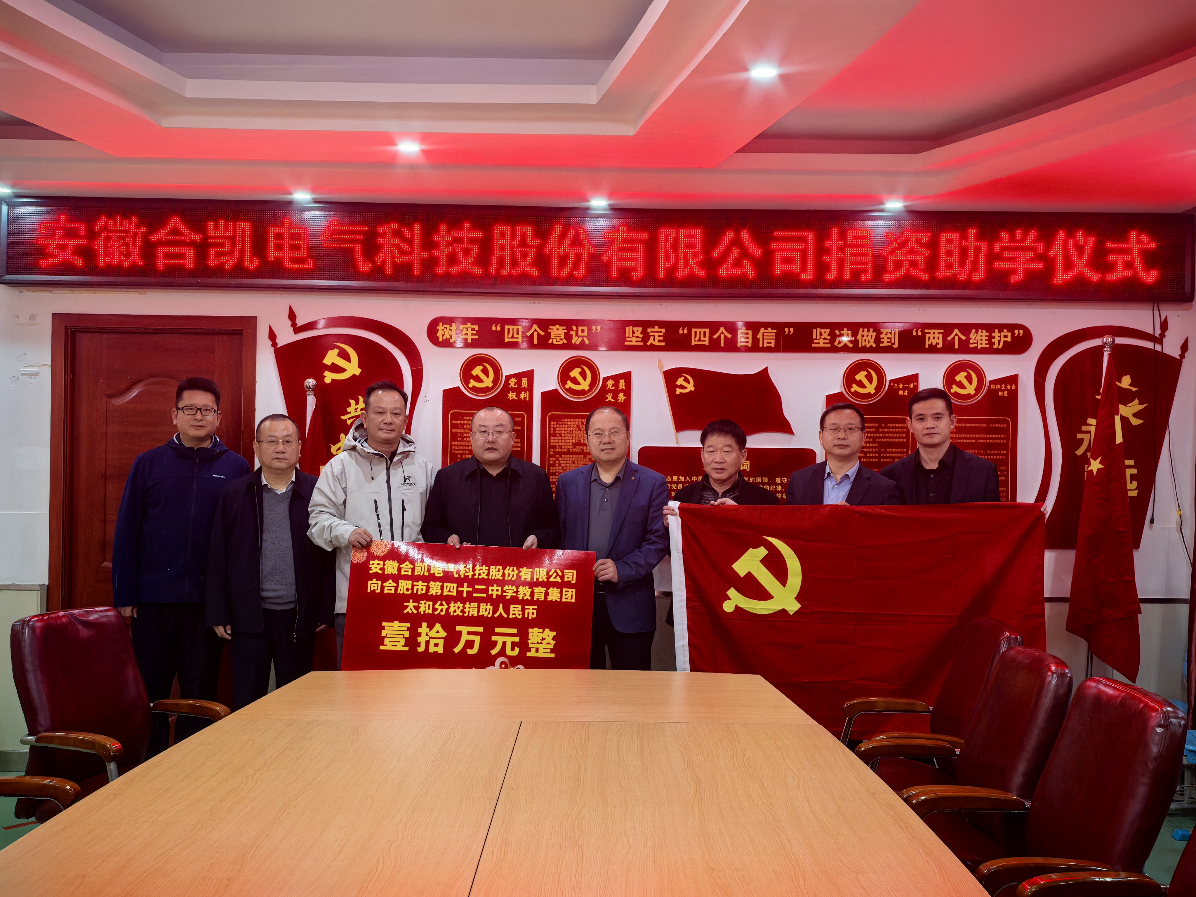 11月6日,今年会电气党支部一行走进合肥市第四十二中学教育集团太和分校,了解学校及学生情况,并向学校捐赠10万元善款,设立今年会专项助学金,用于帮扶贫困及留守儿童、奖励优秀学子。